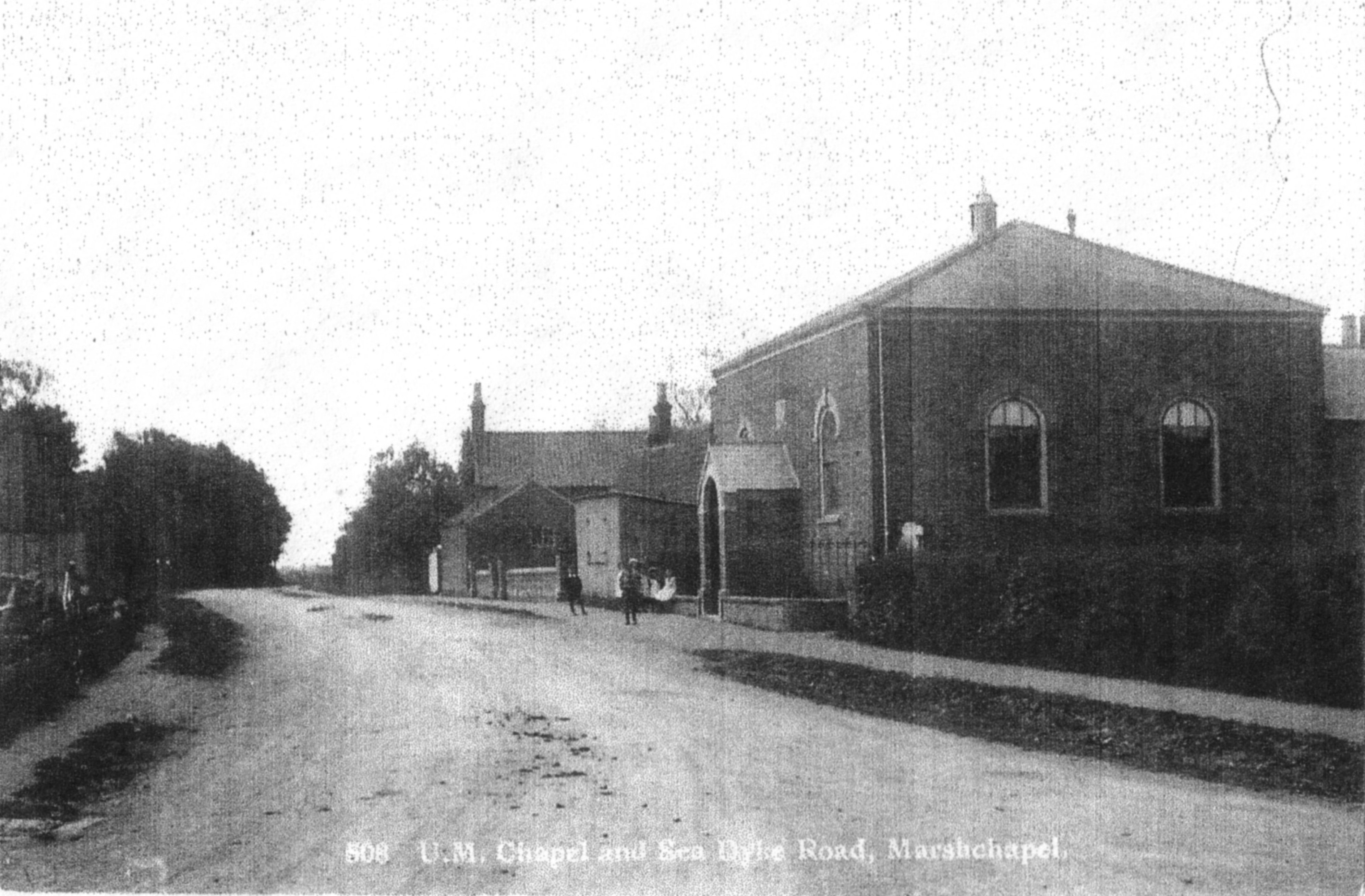 View looking down Sea Dyke Way towards Eskham. The chapel on the right is now demolished.