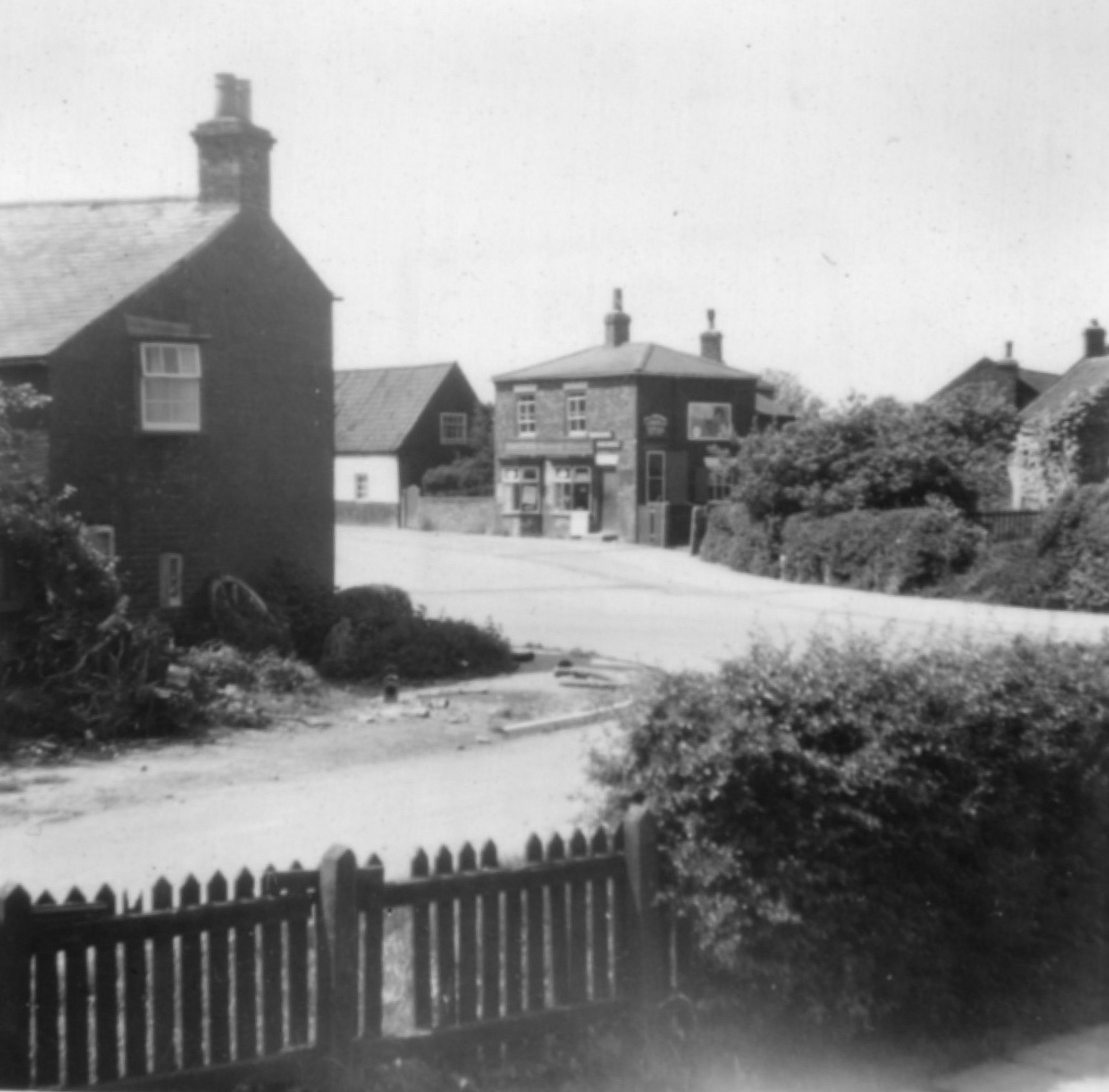 On the left of the photograph is the house that used to be on the road junction in front of the Village Hall.