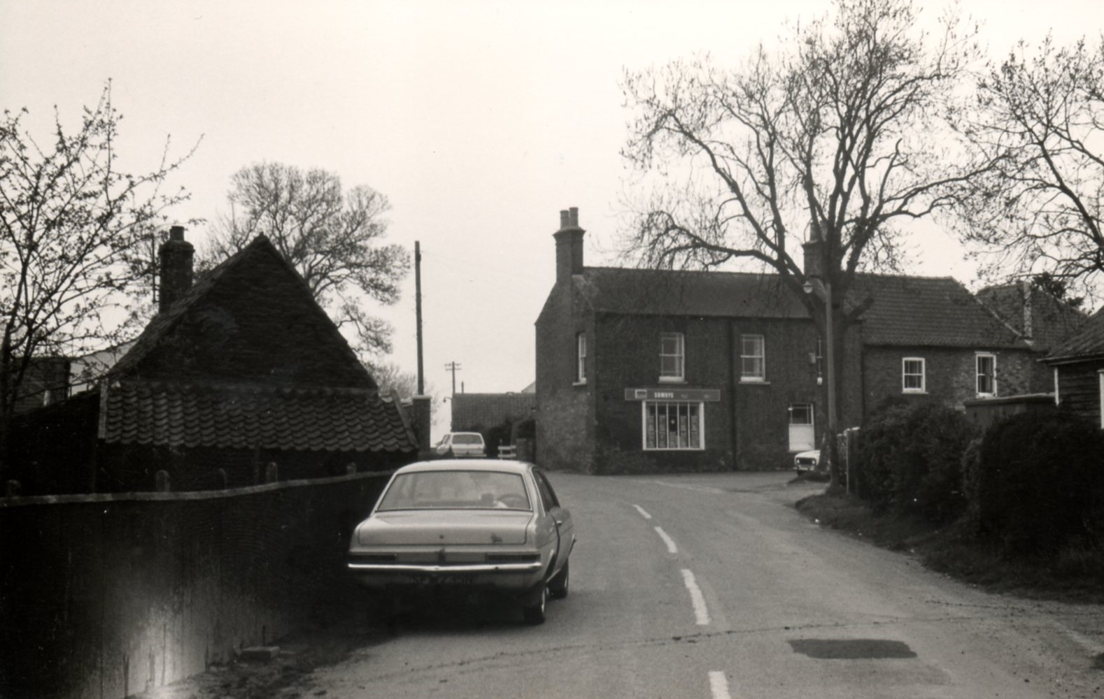 Sowbys Shop looking down Littlefield Lane from Sea Dyke Way. On the right of the photograph can just be seen the wooden bungalow that used to be there.
