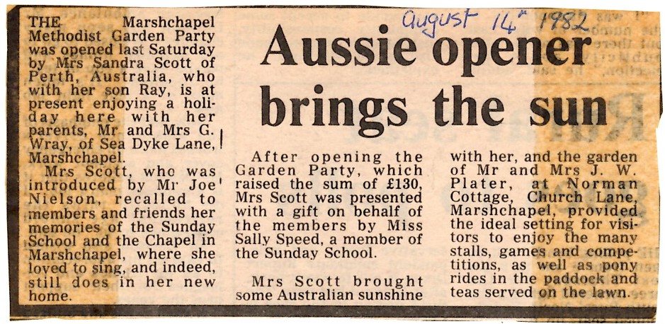 Marshchapel Methodist Garden Party report - 14th. August 1982