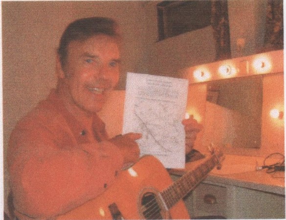 Marty Wilde pointing to map of Marshchapel where he made an