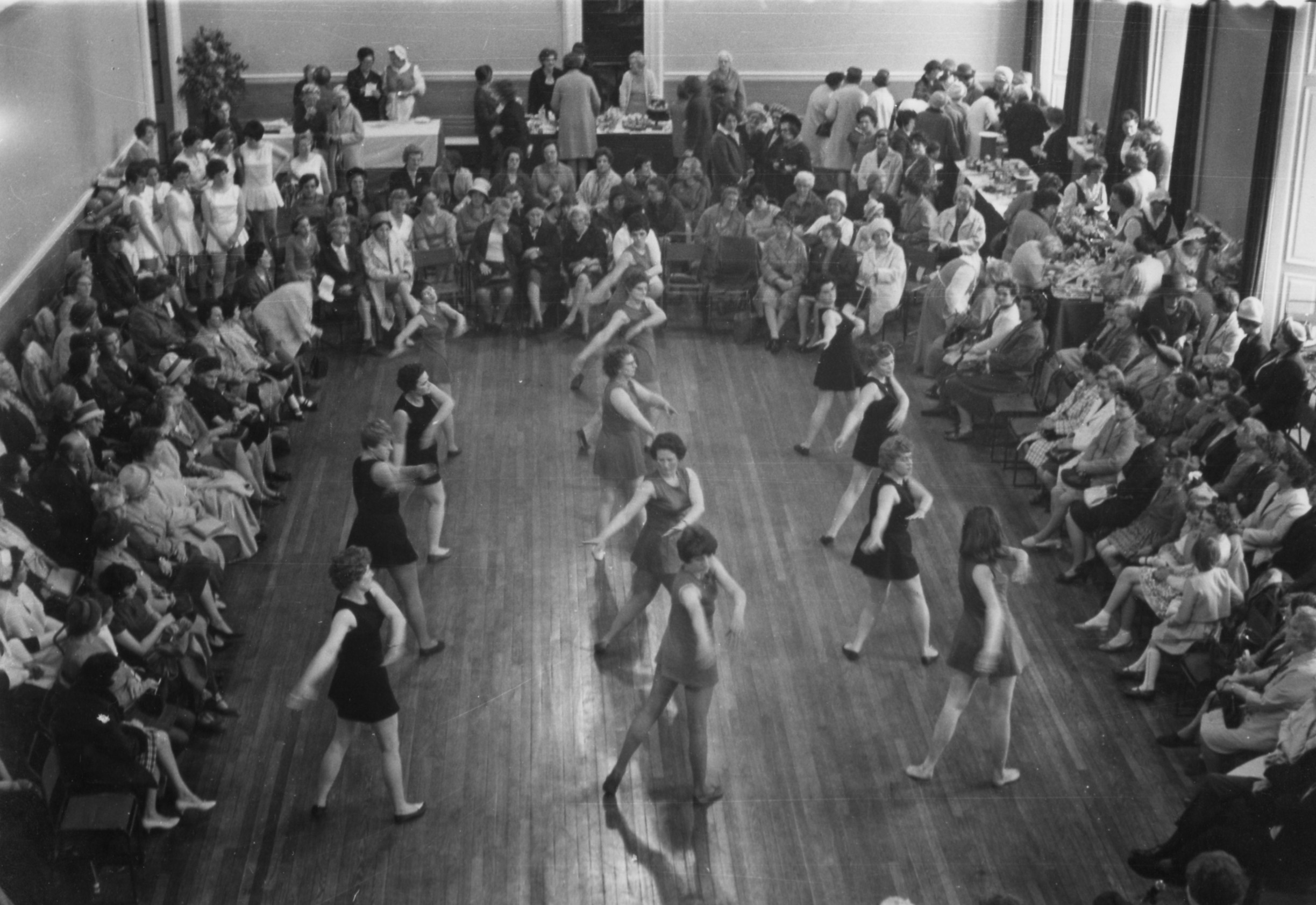 North Cotes Ladies Keep Fit team, putting on a display in North Cotes Village Hall - Circa; Late 1950's.