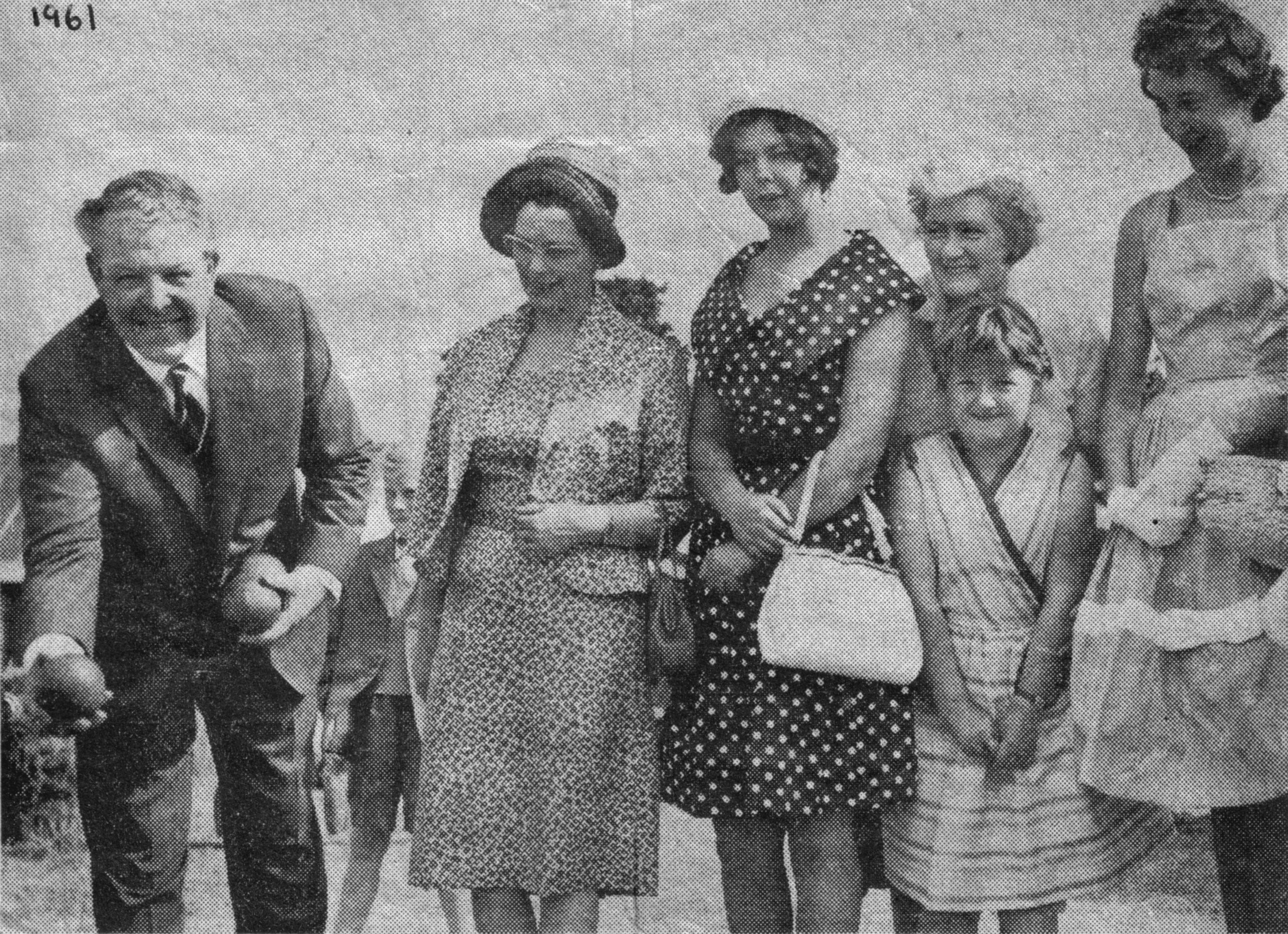 L to R; Raymond Caudwell, Mrs. Caudwell, Rosemary Caudwell, Mabel Manders and her daughter Yvonne, Julie Lyons.
