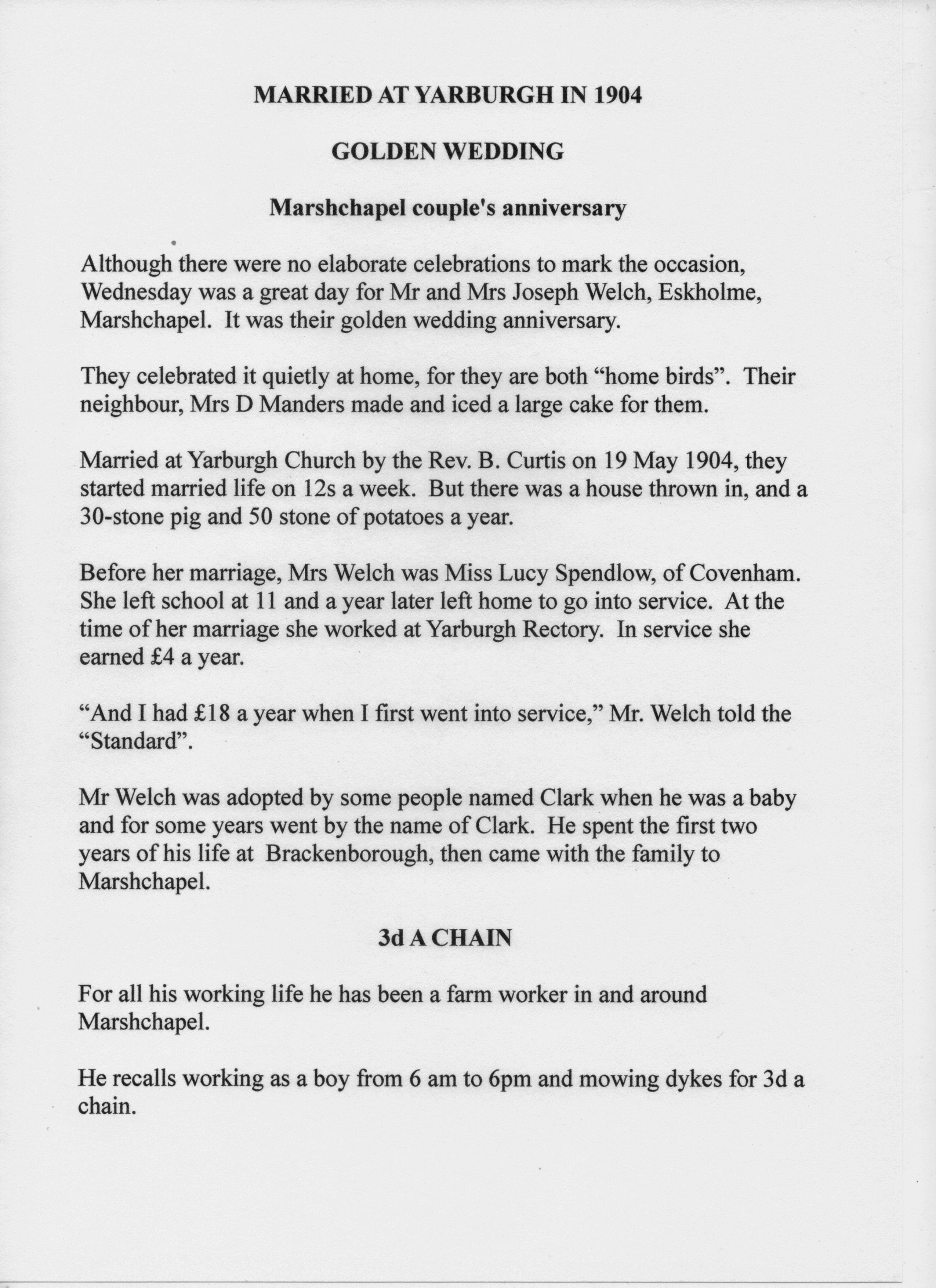 Golden Wedding anniversary of Mr and Mrs Joseph Welch.