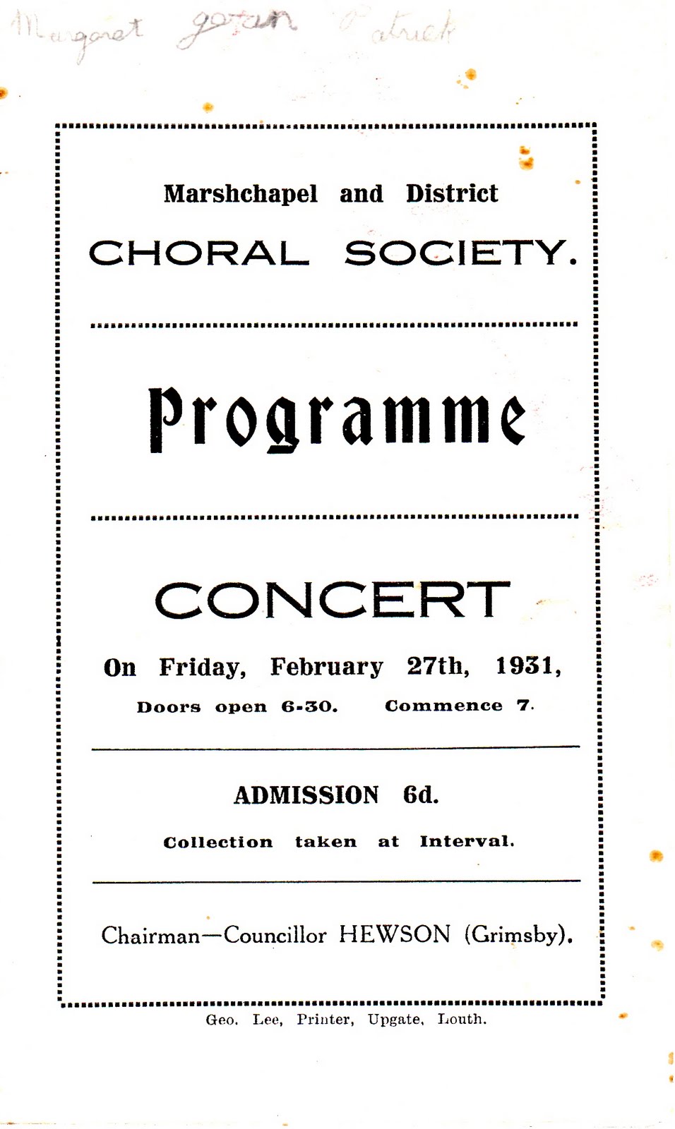 Marshchapel and District Choral Society Concert - 27th. February 1931