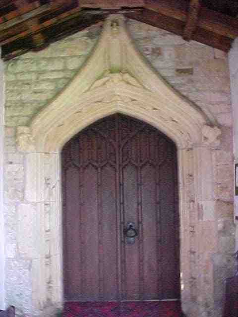 The beautiful stone carving over the door which has been protected over the years by the porch.