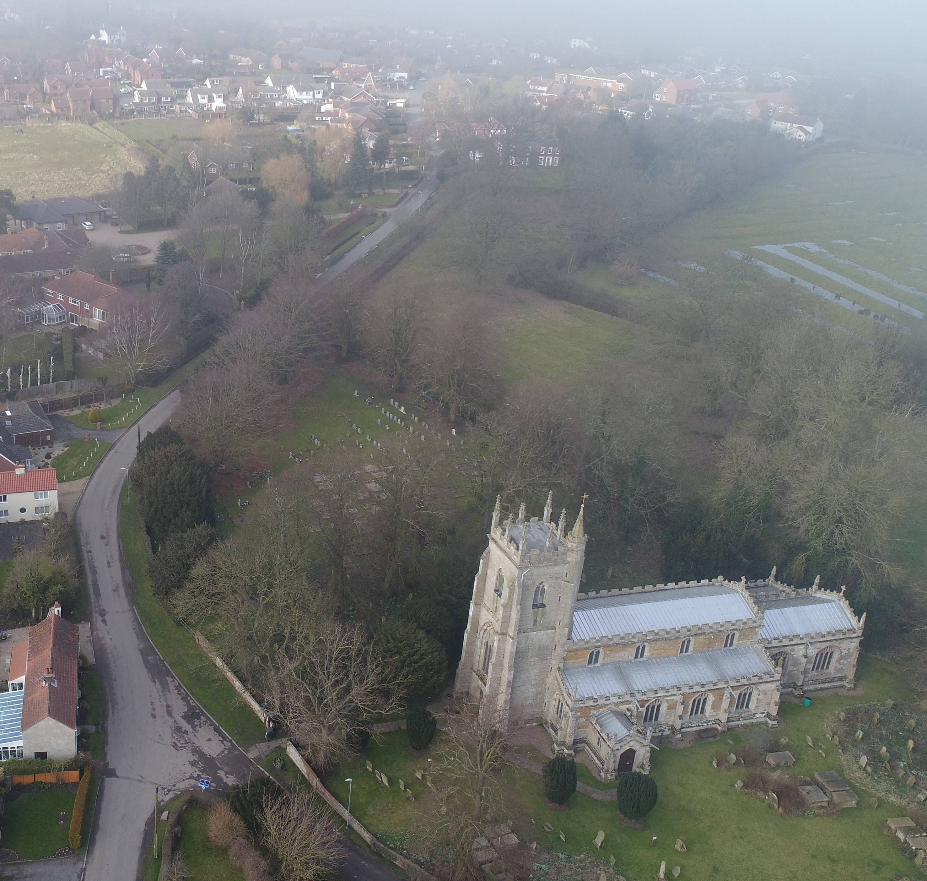Church Lane can be seen on the left of the photograph with the rest of the village in the distance.