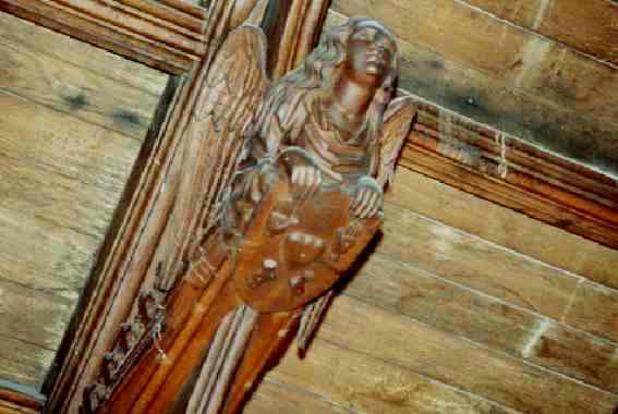 One of the angel carvings in the Chanel roof of St. Mary's Church.