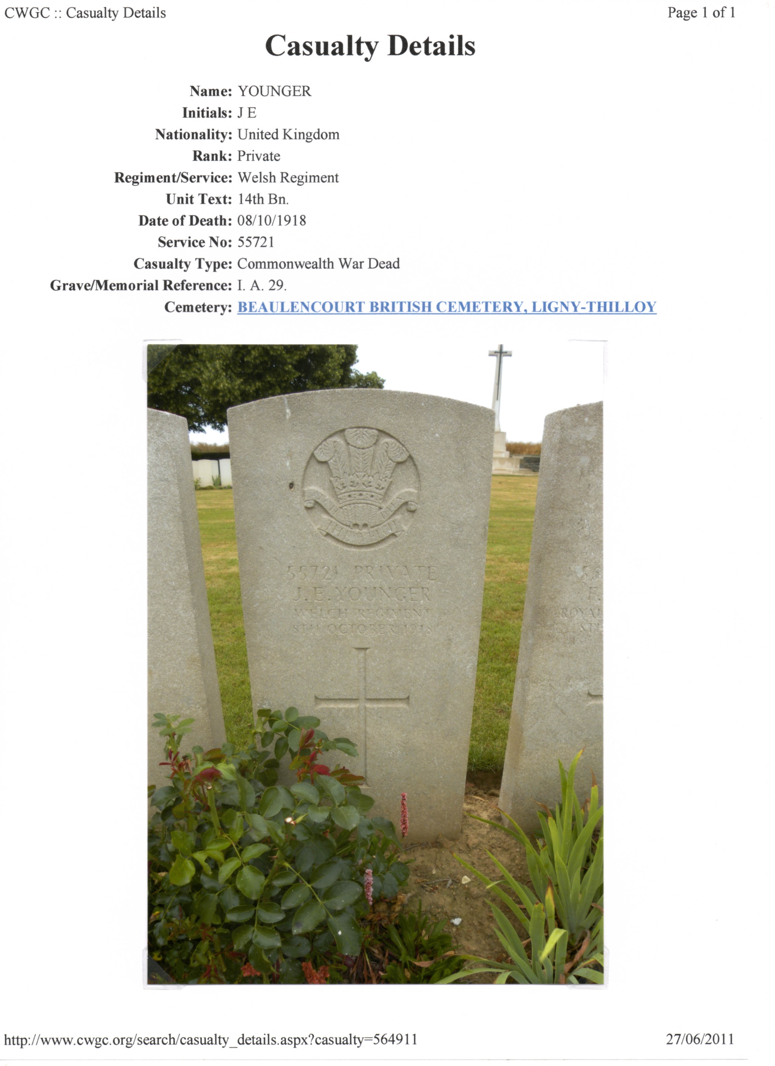 He died very close to the end of WW1.