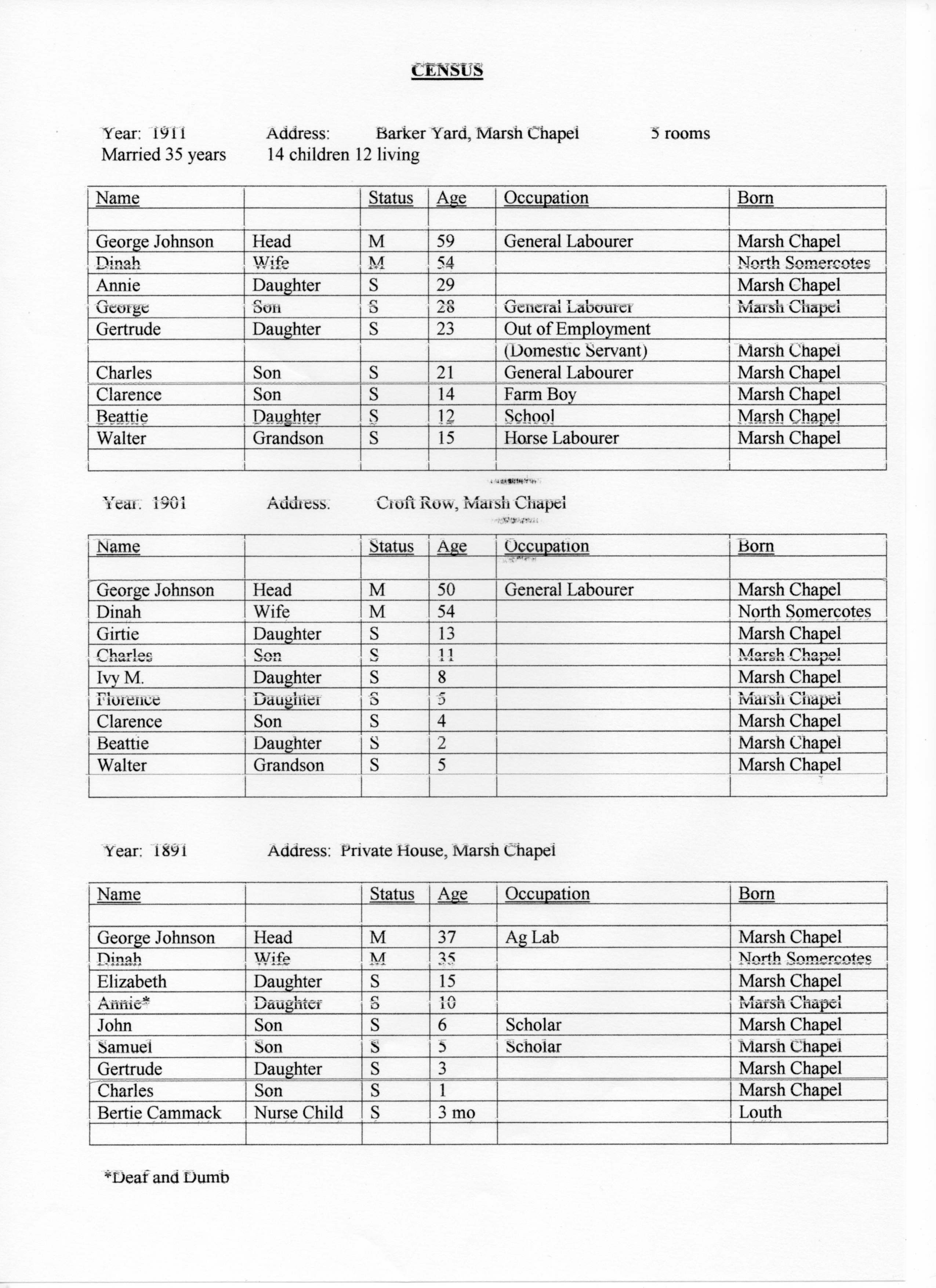 Charles Johnson - Census - 1891 to 1911