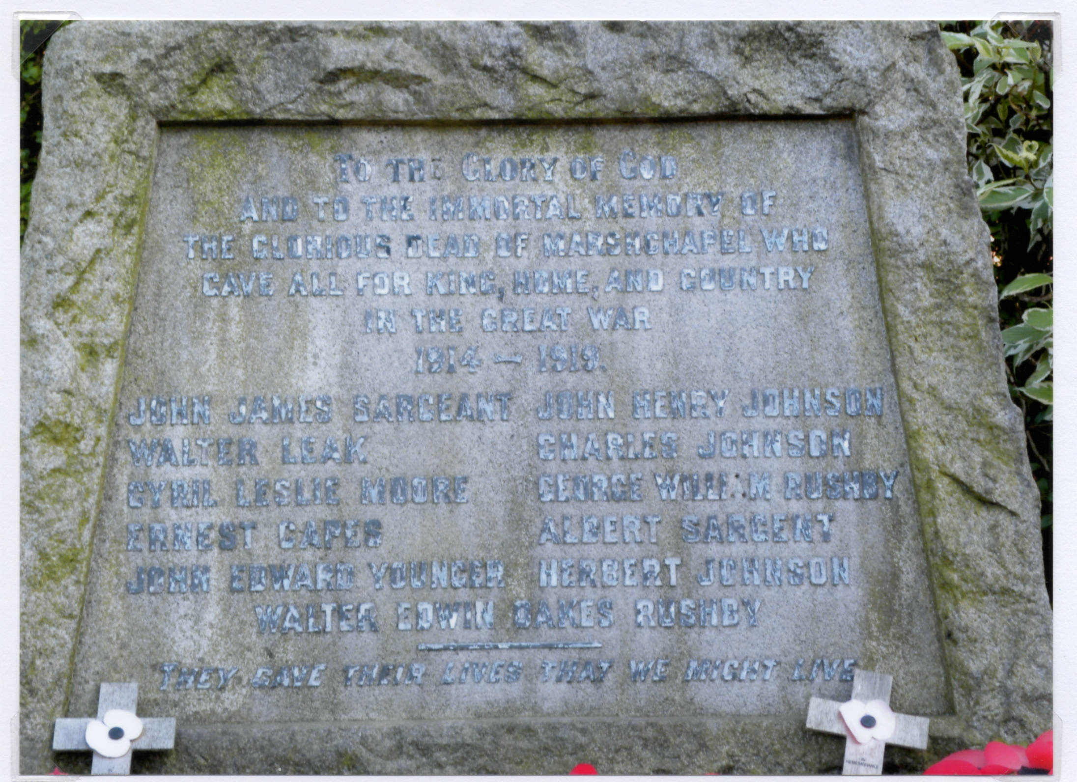 Marshchapel War Memorial which is sited on the corner of Sea Dyke Way and Church Lane.