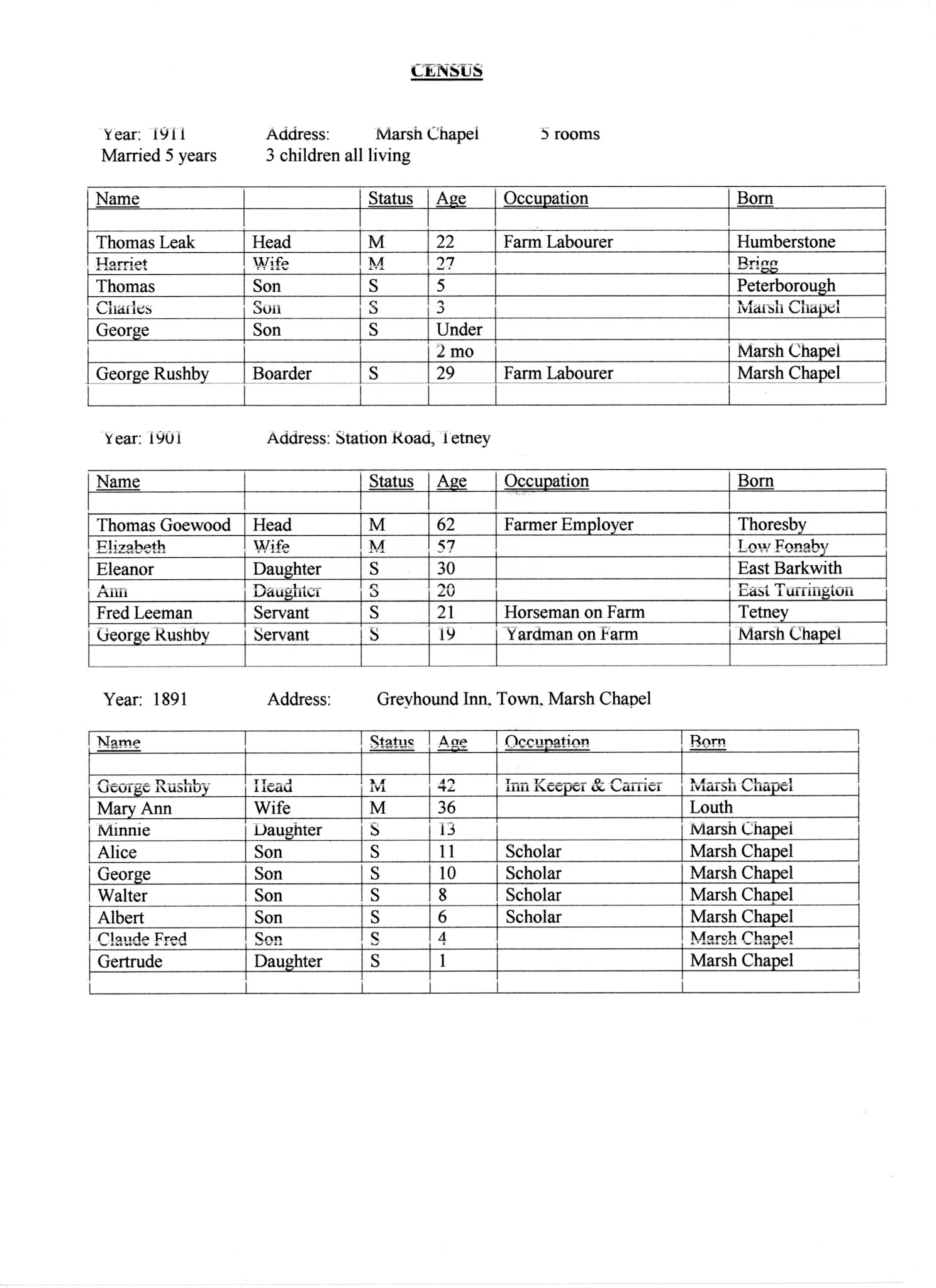 George W Rushby - Census