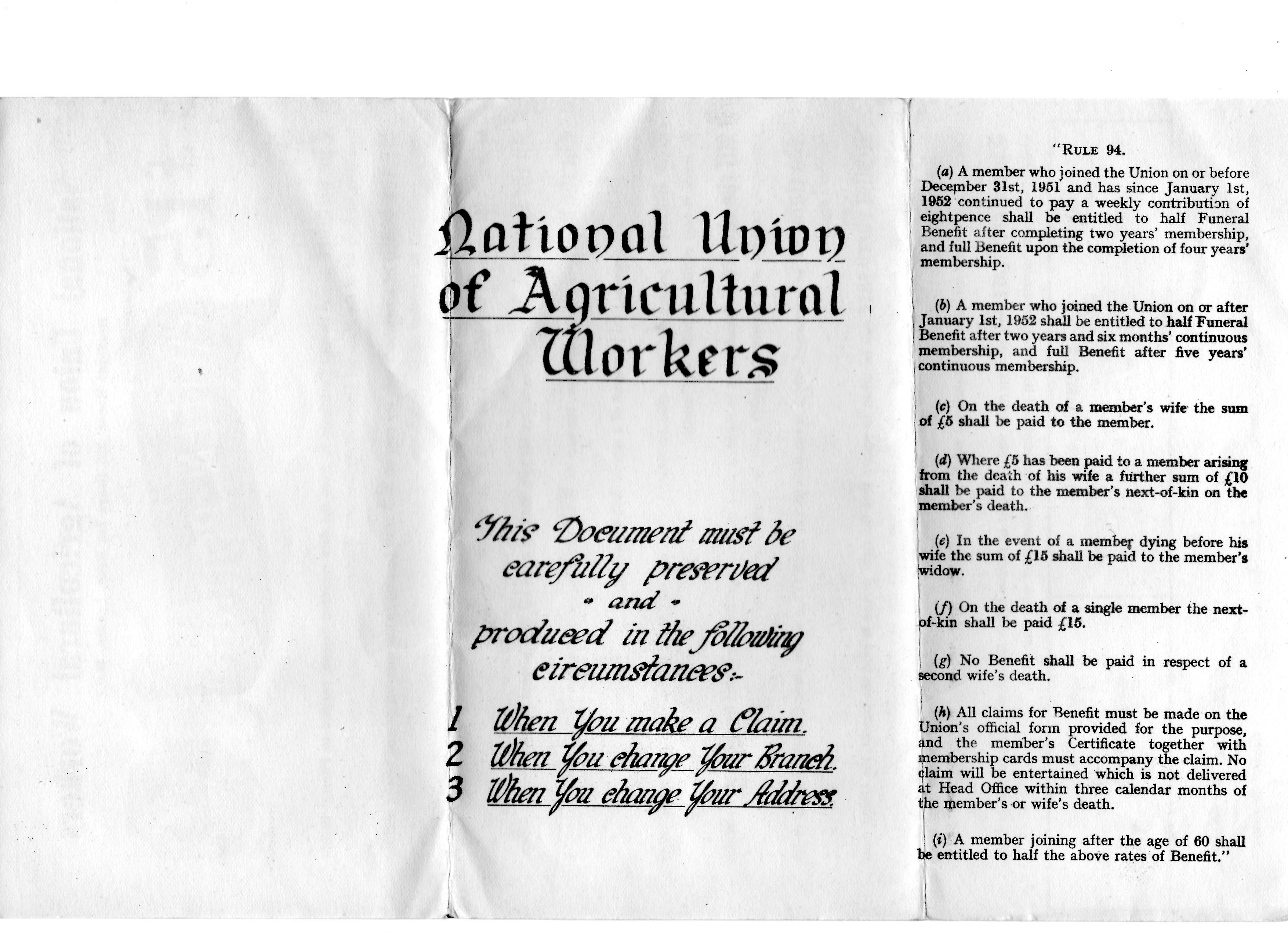 Nation Union of Agricultural Workers document, relating to Len Leak.