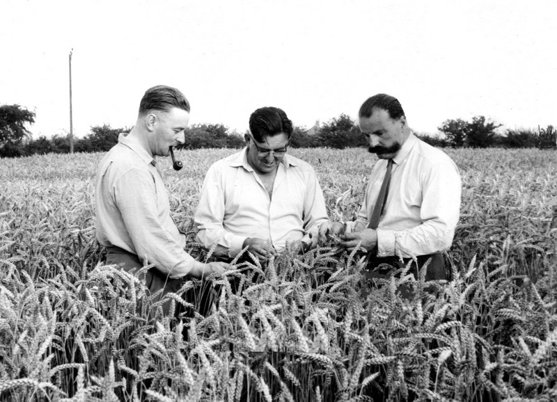 Seed inspection on Mossop's Farm - L to R; Henry Mossop, Bill Clover and Unknown.