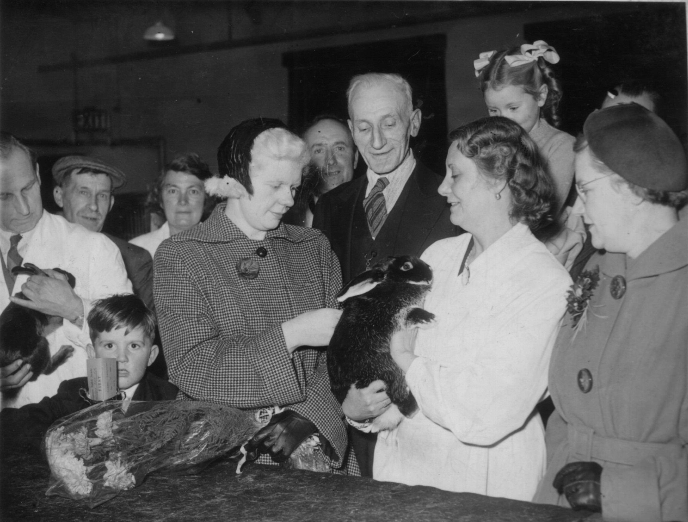 The little wide eyed lad on the left is Mick Grantham after receiving a prize in a rabbit show from the famous Grimsby swimmer, Brenda Fisher.