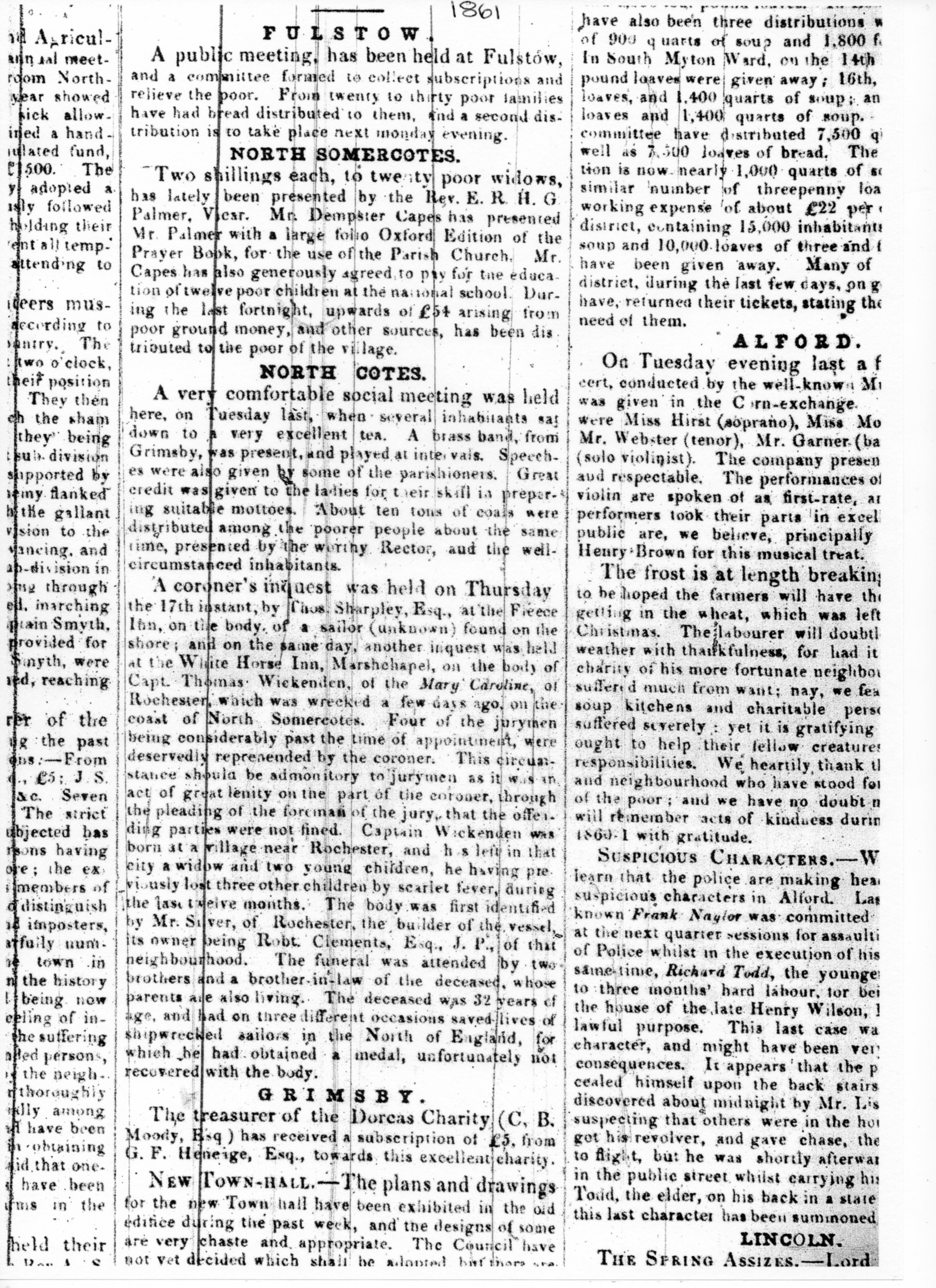 The Captain, Thomas Wickenden, was washed up at Marshchapel and is buried in St. Mary's Churchyard, although no gravestone exists.