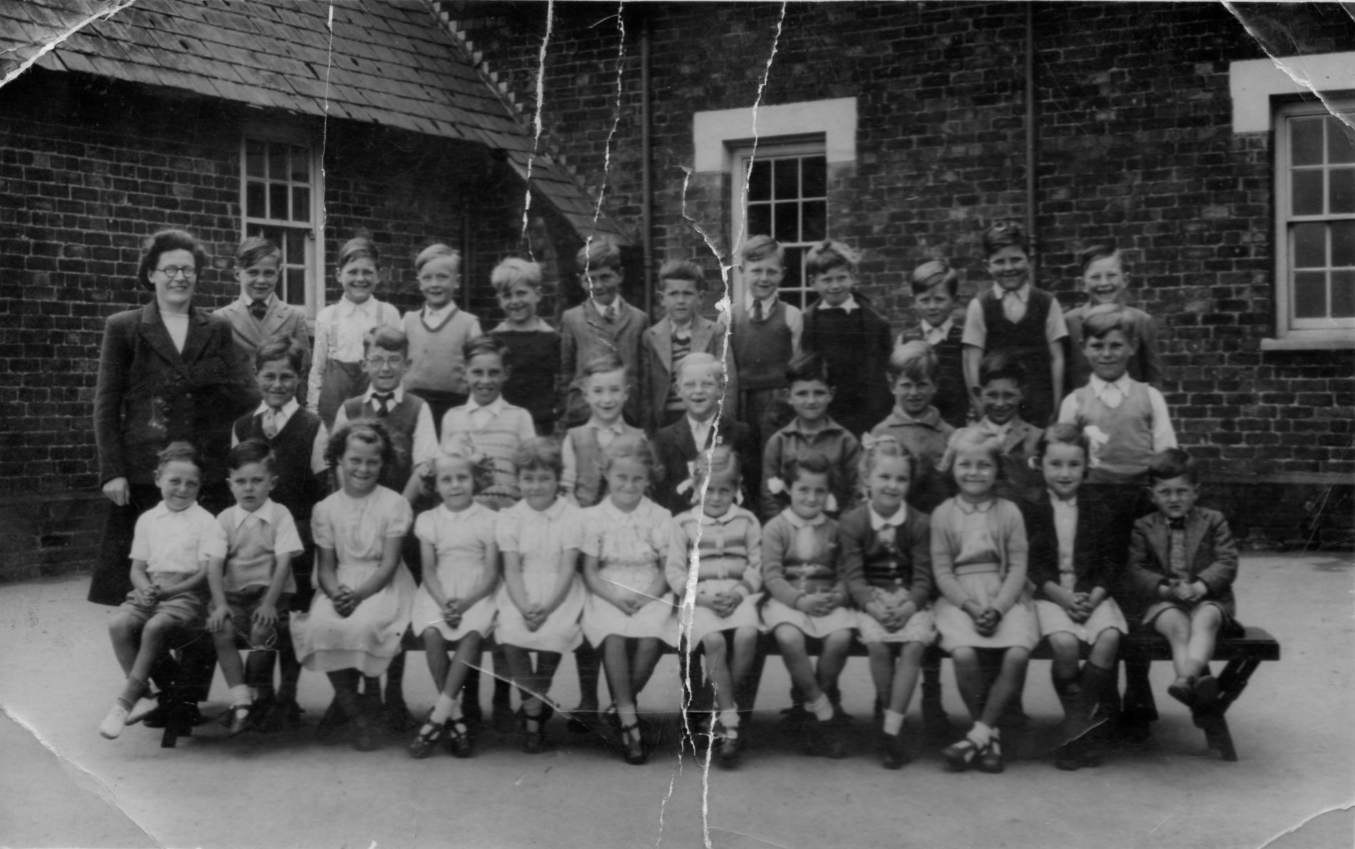Back row: L - R: Teacher, Mrs Newton, Unknown, Unknown, Stephen Wray, 3rd from end Chris Leak, Mick Grantham, and Stuart Grantham.