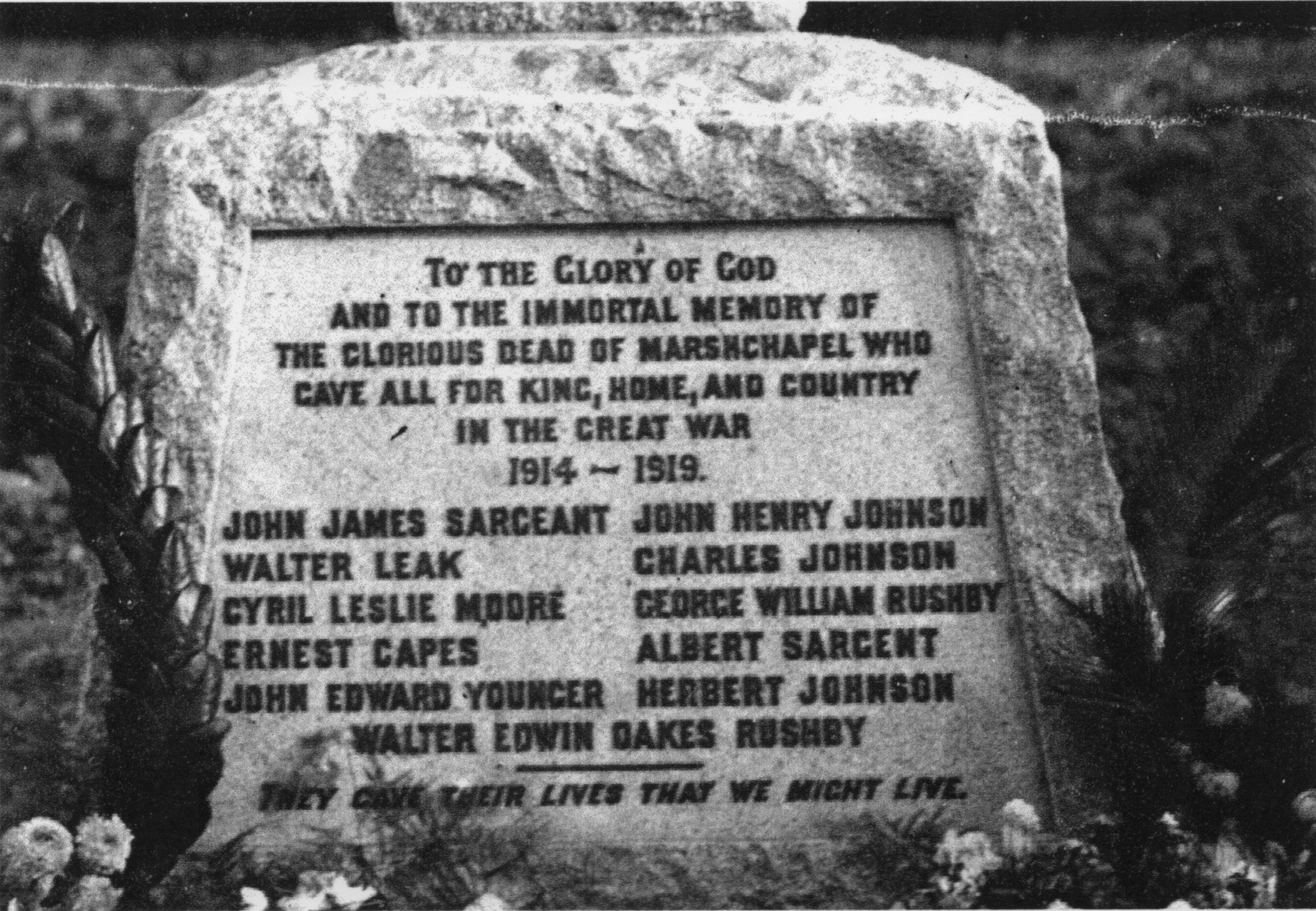 Names of those who lost their lives in the First World War on the Marshchapel War Memorial